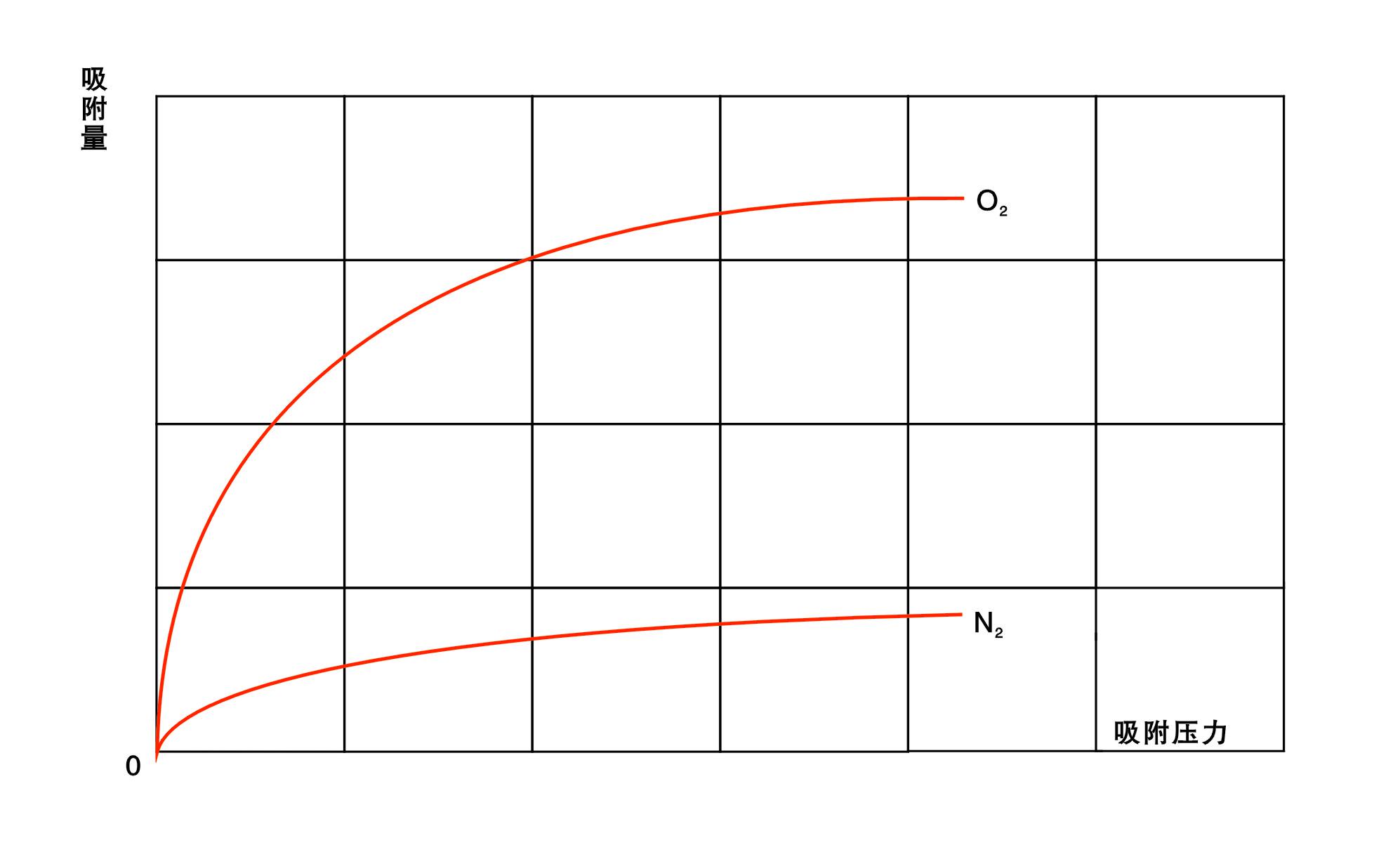 如上所述,在空气压力升高时,碳分子筛将大量吸附氧气、二氧化碳和水分。当压力降到常压时,碳分子筛对氧气、二氧化碳和水分的吸附量较小。